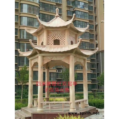曲阳正普园林雕塑 晚霞红双层凉亭 花岗岩双层凉亭 石雕双层凉亭 凉亭 厂家大量加工批发