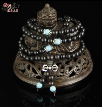 黑檀木绿松石佛珠 手链 红木雕工艺品 家居礼品 古玩首饰信息二维码