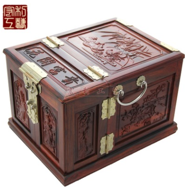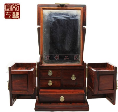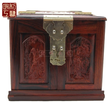 红酸枝精雕四大美女镜箱 红木雕家居礼品仿古摆件信息二维码