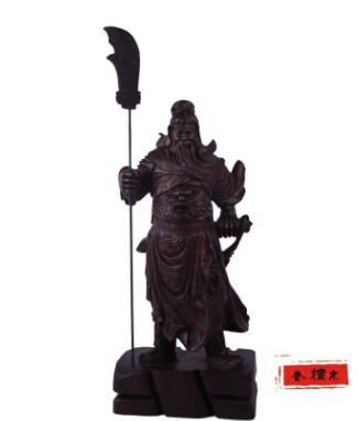 大有红木 黑檀木雕立刀关公神像 摆件工艺品礼品木质关羽人物雕像信息二维码
