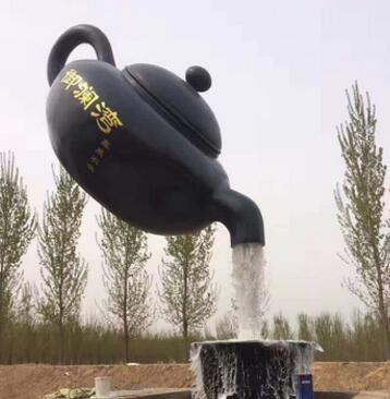 玻璃钢雕塑 厂家定做 悬空流水茶壶碗雕塑装饰摆件 流水摆件装饰