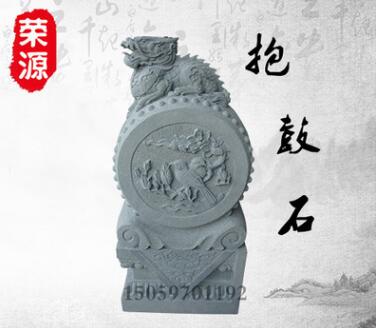 青石制作守门抱鼓一对