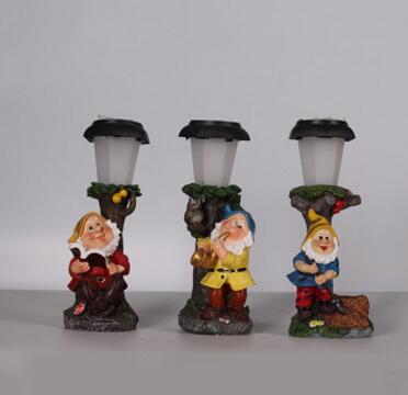 树脂工艺品户外花园林景观小区庭院装饰太阳能灯小矮人物卡通摆件