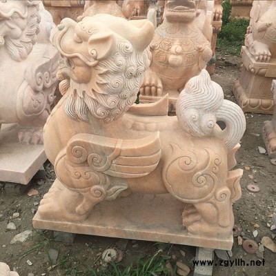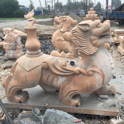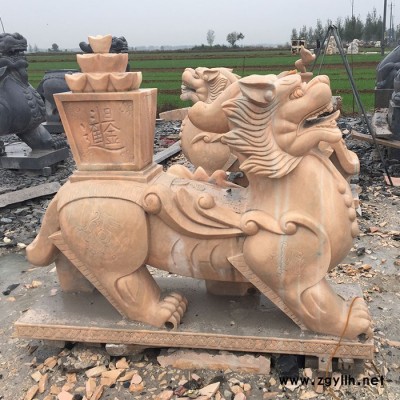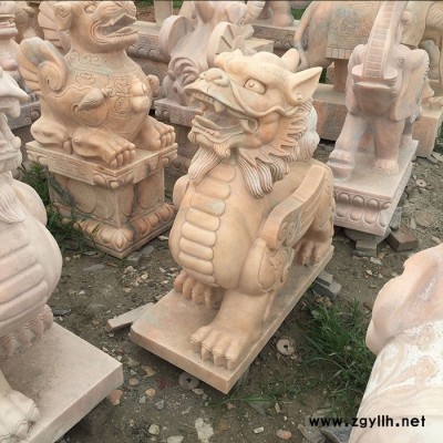 沐泽供应石雕摆件动物雕塑晚霞红石材貔貅雕刻**看门镇宅