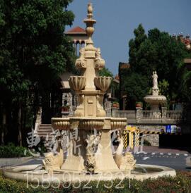 厂家供应石雕喷泉 黄绣石喷泉 汉白玉黄金麻喷泉水钵 大型喷水池