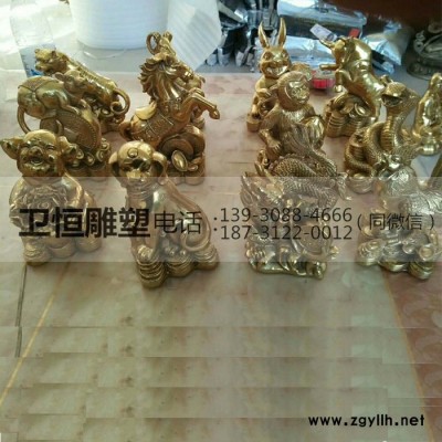 卫恒铜雕厂家供应定做三十公分风水纯铜半身十二生肖雕塑 户外喷水景观雕塑