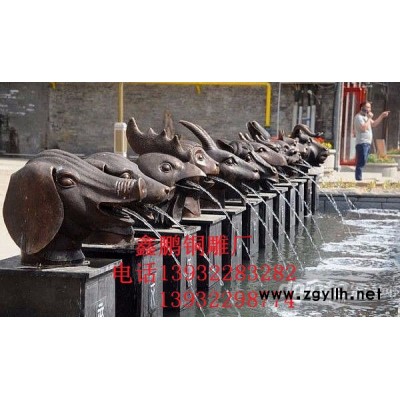 鑫鹏铜雕厂家定制 纯铜十二生肖雕塑 十二生肖全身像 铜雕十二生肖兽头 户外喷水景观雕塑