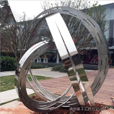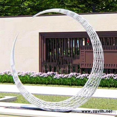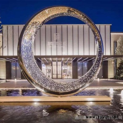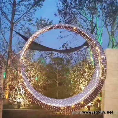 嘉华雕塑 不锈钢抽象圆环月亮雕塑镜面镂空发光圆环抽象假山酒店金属摆件