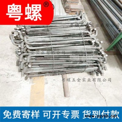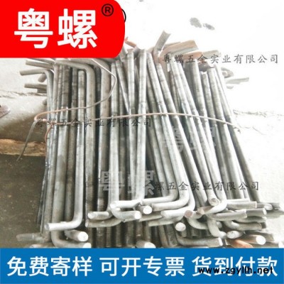 粤螺供应Q345B螺丝 东莞热镀锌螺丝厂商 路灯7字地脚螺栓 Q235L型钢结构铁塔预埋螺丝
