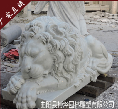 供应汉白玉石雕狮子欧式狮子爬狮大理石睡狮镇宅辟邪仿真动物门口