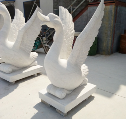 石雕喷水天鹅雕塑 汉白玉喷水鸭 黄锈石喷泉石雕园林公园流水摆件