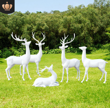 玻璃钢动物雕塑彩绘仿真梅花鹿 几何切面鹿户外公园景观摆件