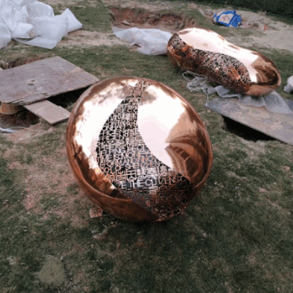 不锈钢鹅卵石镂空镜面雕塑花园公园水大型户外创意石头景观石水滴
