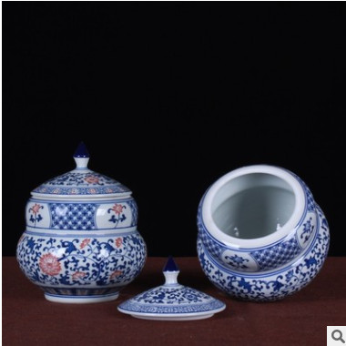 景德镇陶瓷工艺品批发 青花瓷缠枝莲储物罐茶叶罐大号日用陶瓷