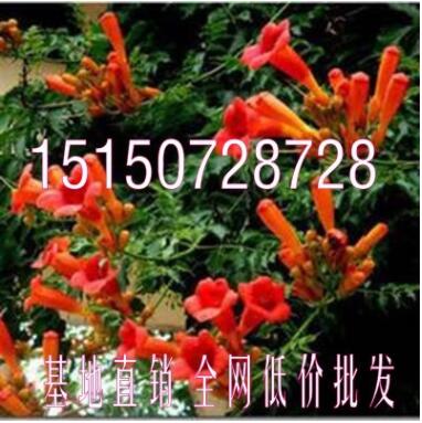 攀援花卉,爬藤速度快,红花绿叶 美国凌宵花苗 凌霄苗 当年开花