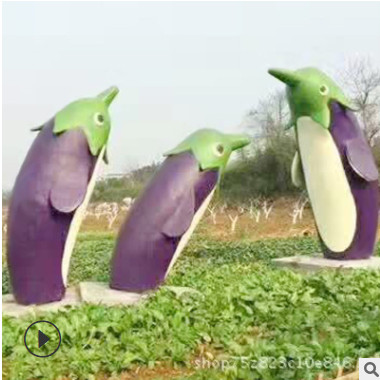 供应仿真卡通茄子树脂玻璃钢蔬菜水果雕塑厂家定制景观工艺品摆件