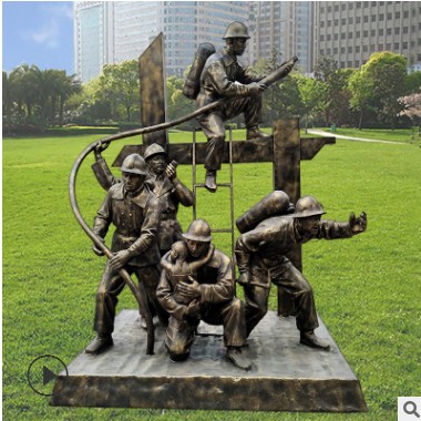 消防员雕塑玻璃钢仿铜消防人员灭火救火示范基地公园户外装饰摆件